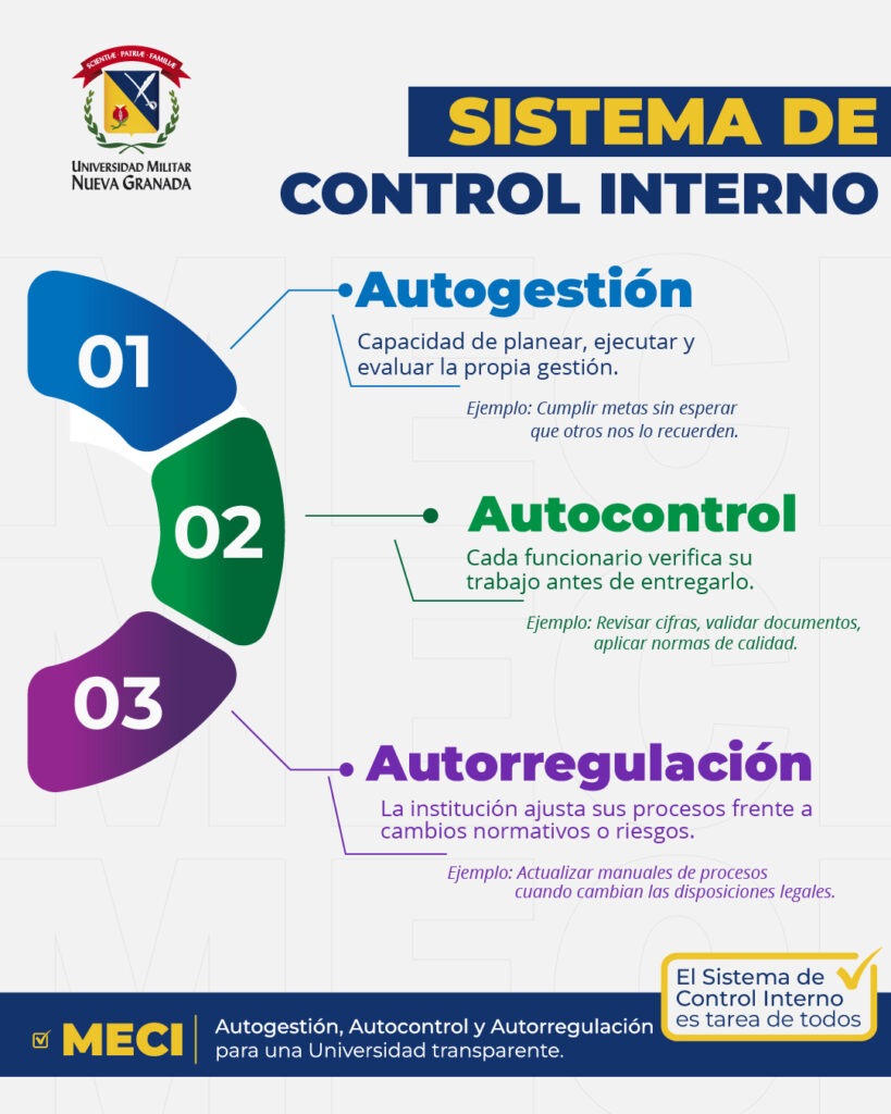 Con el lema «El Sistema de Control Interno es tarea de todos», la Universidad Militar Nueva Granada impulsa una campaña de sensibilización para que toda la comunidad universitaria conozca la importancia de este sistema y su papel en la transparencia institucional.