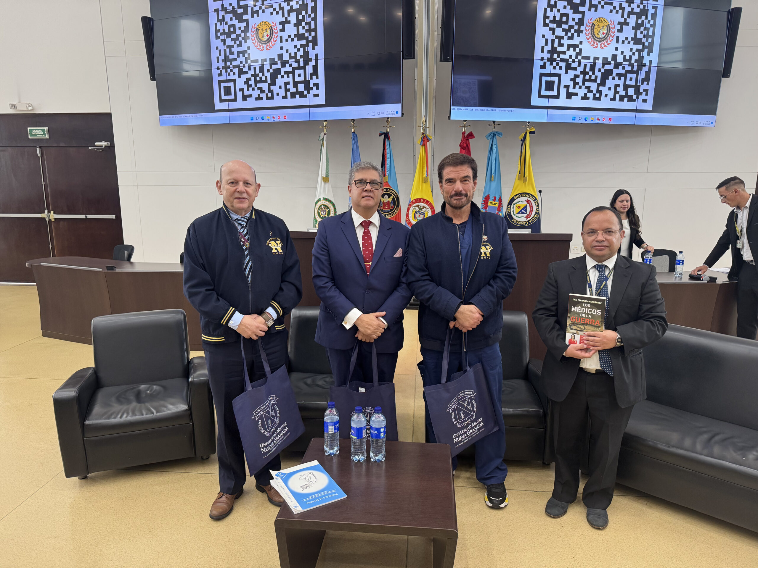 El evento incluyó, además, una exposición de pósteres académicos elaborados por el grupo de Derecho Penal Internacional, que ofreció una mirada pedagógica a los tribunales internacionales y a los mecanismos de justicia que contribuyen a la construcción de memoria y a la defensa del Derecho Internacional Humanitario.