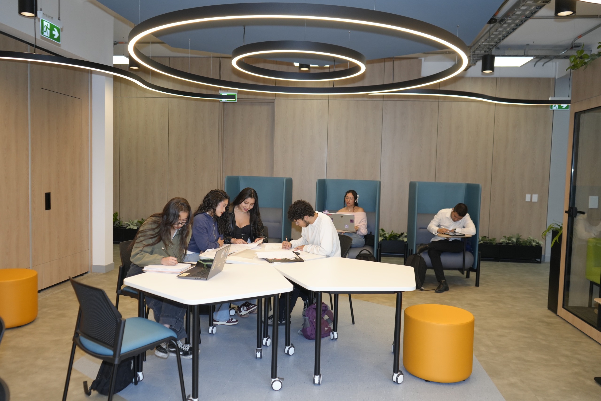 Un lugar que antes era de oficinas hoy cobra vida como un ambiente para formarse, encontrarse y construir ideas. Este nuevo escenario cuenta con tres aulas escalables y una sala de coworking, diseñadas para adaptarse a distintas dinámicas e integrarse para recibir a más personas. Ambientes que evolucionan, se conectan con quienes los habitan y fortalecen una experiencia universitaria más cercana y dinámica.
